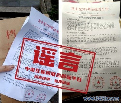 谣言:收到《专项扶贫资金发放通知书》可领取319万元扶贫金?